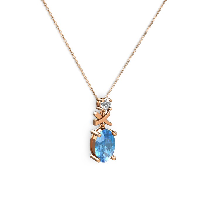 Akuamarin ve swarovski 14 ayar rose altın kolye (40 cm rose altın rolo zincir)
