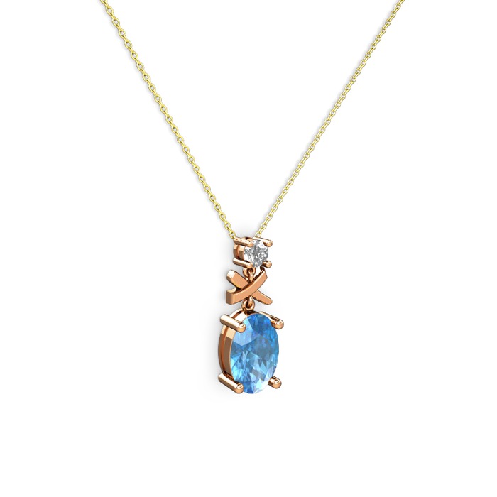Akuamarin ve swarovski 925 ayar rose altın kaplama gümüş kolye (40 cm altın rolo zincir)