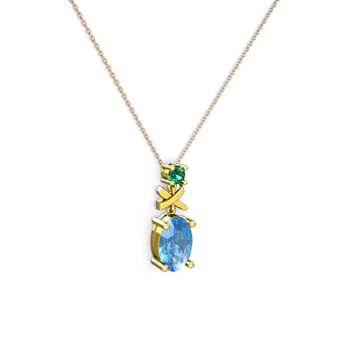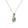 Akuamarin ve yeşil kuvars 18 ayar altın kolye (40 cm rose altın rolo zincir)