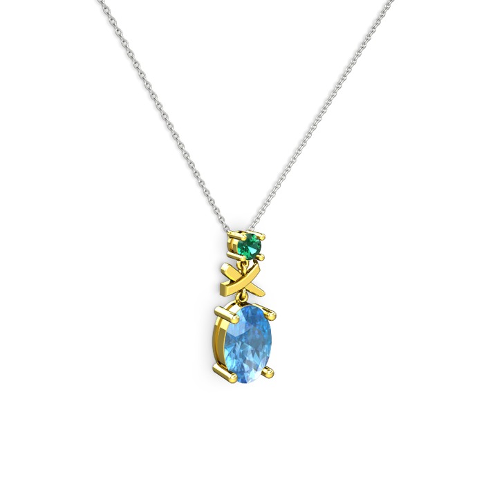 Akuamarin ve yeşil kuvars 8 ayar altın kolye (40 cm beyaz altın rolo zincir)