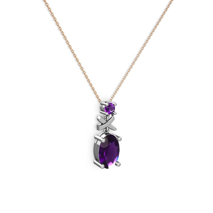 Ametist 14 ayar beyaz altın kolye (40 cm rose altın rolo zincir)