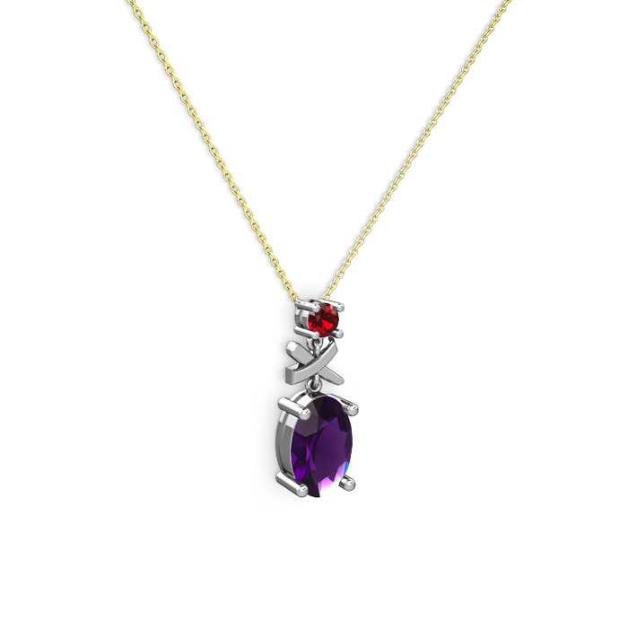 Ametist ve garnet 14 ayar beyaz altın kolye (40 cm altın rolo zincir)