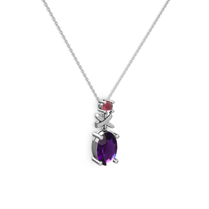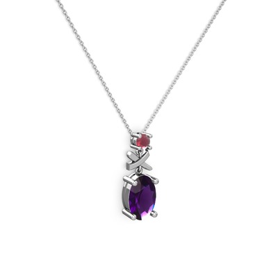 Ametist ve kök yakut 925 ayar gümüş kolye (40 cm beyaz altın rolo zincir)