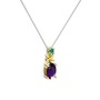 Ametist ve kök zümrüt 925 ayar altın kaplama gümüş kolye (40 cm beyaz altın rolo zincir)
