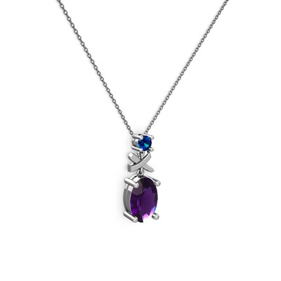 Ametist ve lab safir 8 ayar beyaz altın kolye (40 cm gümüş rolo zincir)