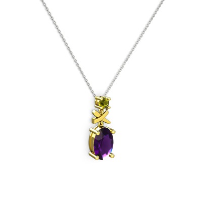 Ametist ve peridot 14 ayar altın kolye (40 cm gümüş rolo zincir)