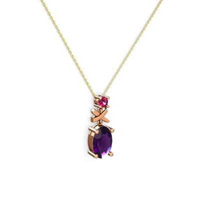 Ametist ve rodolit garnet 18 ayar rose altın kolye (40 cm altın rolo zincir)