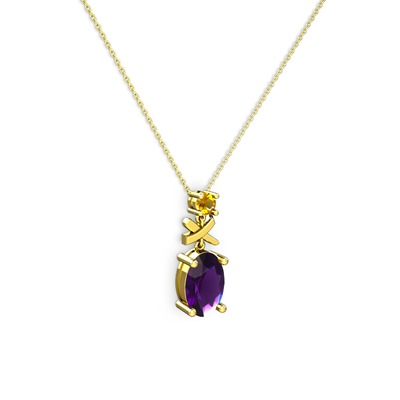 Ametist ve sitrin 8 ayar altın kolye (40 cm altın rolo zincir)