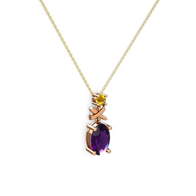 Ametist ve sitrin 925 ayar rose altın kaplama gümüş kolye (40 cm altın rolo zincir)