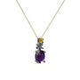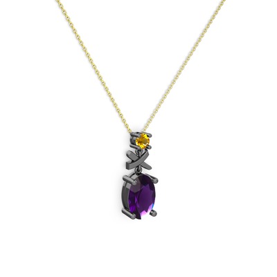 Ametist ve sitrin 925 ayar siyah rodyum kaplama gümüş kolye (40 cm altın rolo zincir)