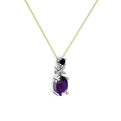 Ametist ve siyah zirkon 8 ayar beyaz altın kolye (40 cm altın rolo zincir)