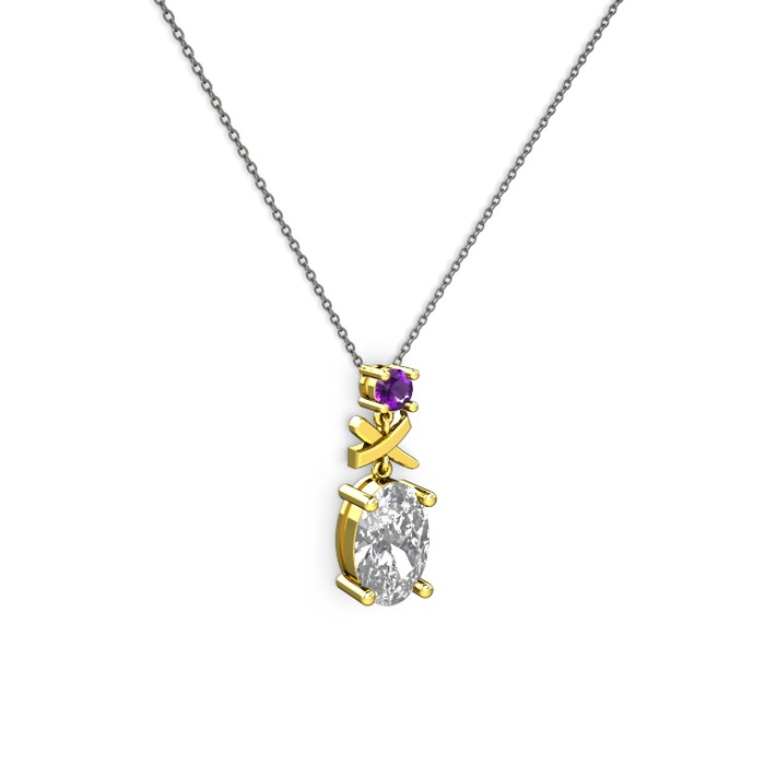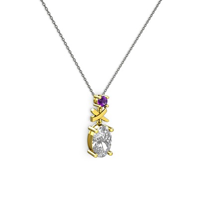 Beyaz zirkon ve ametist 14 ayar altın kolye (40 cm gümüş rolo zincir)