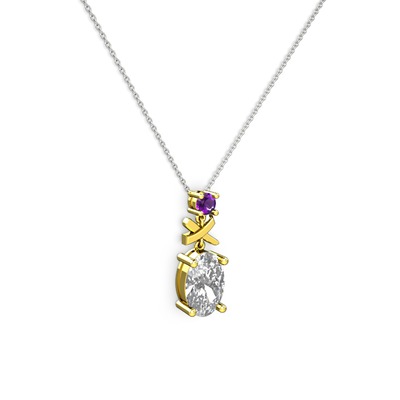 Beyaz zirkon ve ametist 925 ayar altın kaplama gümüş kolye (40 cm beyaz altın rolo zincir)