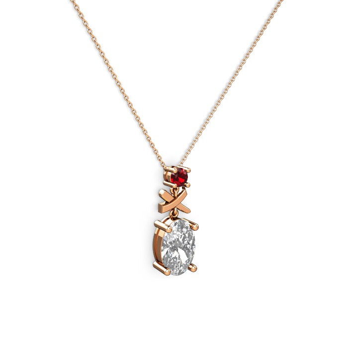 Beyaz zirkon ve garnet 18 ayar rose altın kolye (40 cm rose altın rolo zincir)