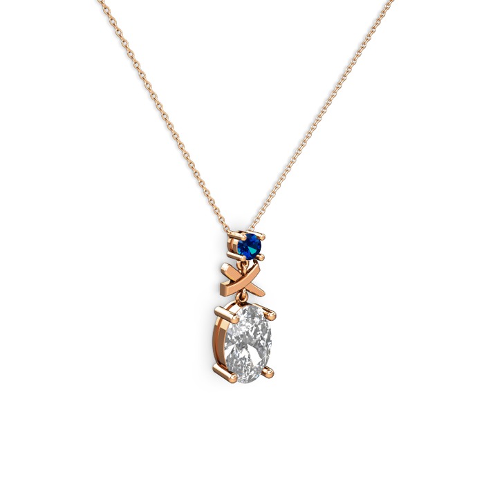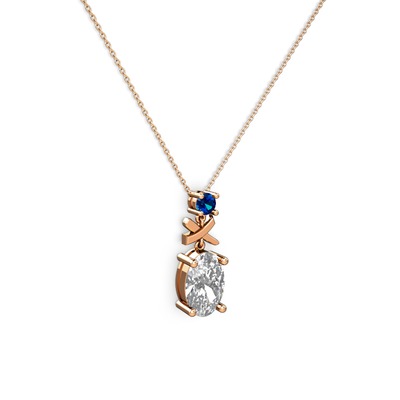 Beyaz zirkon ve lab safir 8 ayar rose altın kolye (40 cm gümüş rolo zincir)