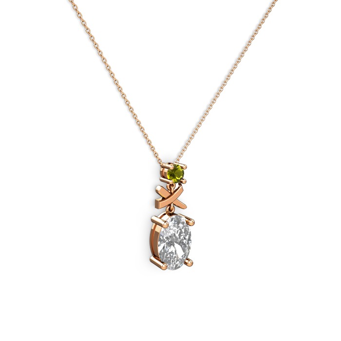 Beyaz zirkon ve peridot 14 ayar rose altın kolye (40 cm rose altın rolo zincir)