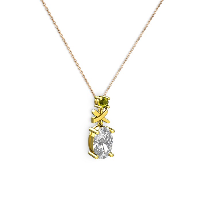 Beyaz zirkon ve peridot 925 ayar altın kaplama gümüş kolye (40 cm rose altın rolo zincir)