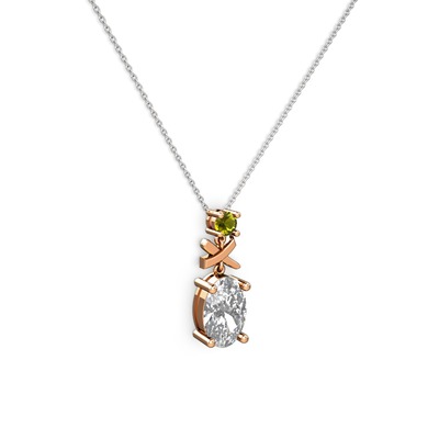 Beyaz zirkon ve peridot 925 ayar rose altın kaplama gümüş kolye (40 cm gümüş rolo zincir)