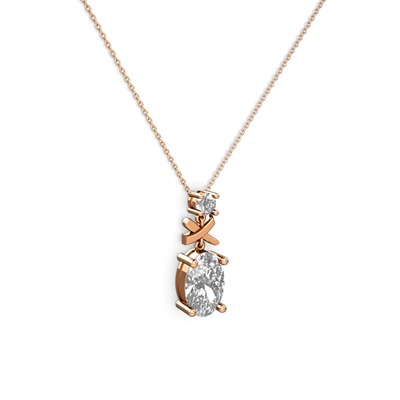 Beyaz zirkon ve pırlanta 14 ayar rose altın kolye (0.24 karat, 40 cm rose altın rolo zincir)