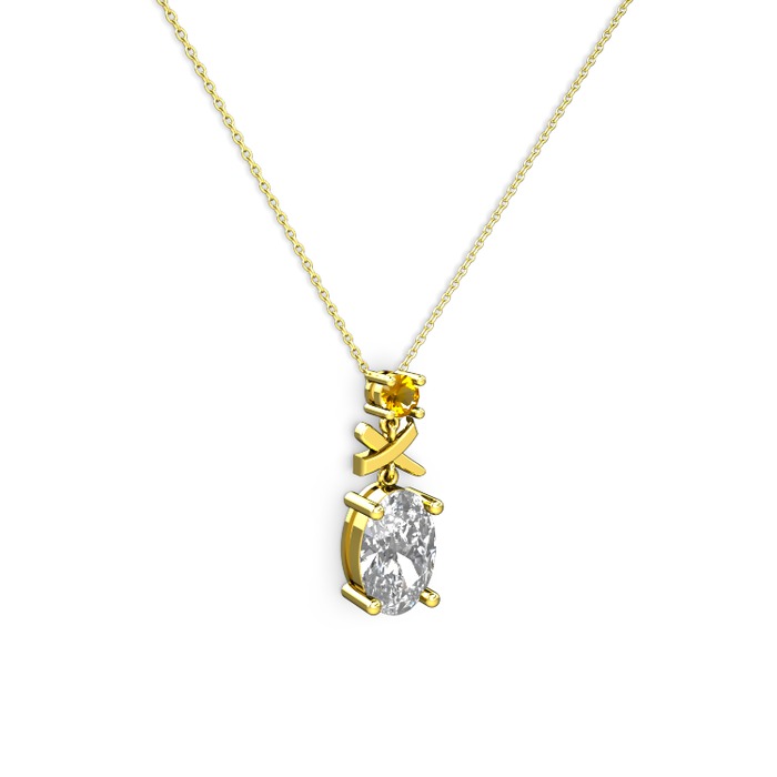 Beyaz zirkon ve sitrin 8 ayar altın kolye (40 cm altın rolo zincir)