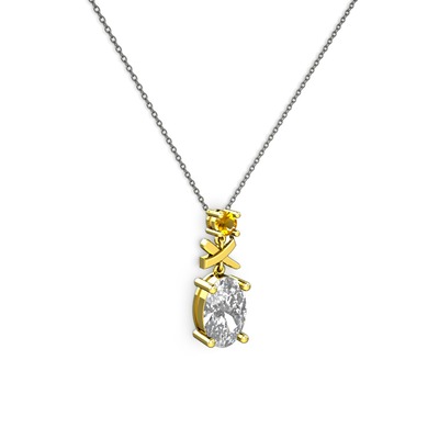 Beyaz zirkon ve sitrin 925 ayar altın kaplama gümüş kolye (40 cm gümüş rolo zincir)