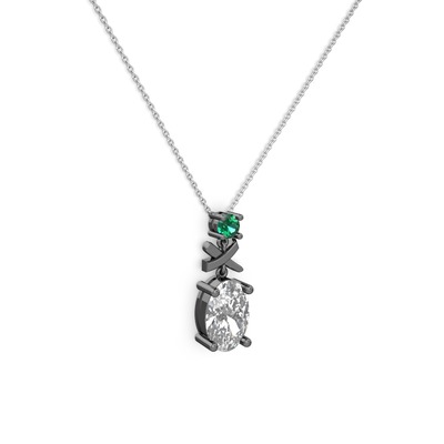 Beyaz zirkon ve yeşil kuvars 925 ayar siyah rodyum kaplama gümüş kolye (40 cm beyaz altın rolo zincir)