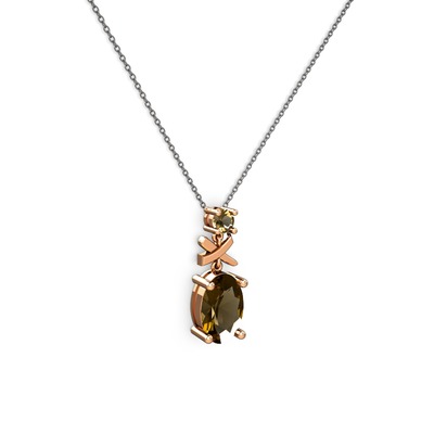 Dumanlı kuvars 14 ayar rose altın kolye (40 cm gümüş rolo zincir)
