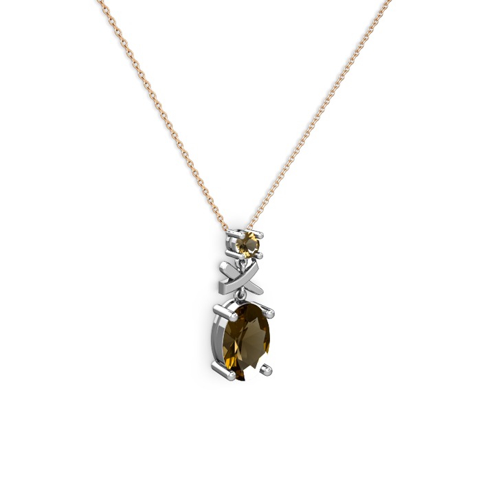 Dumanlı kuvars 18 ayar beyaz altın kolye (40 cm rose altın rolo zincir)