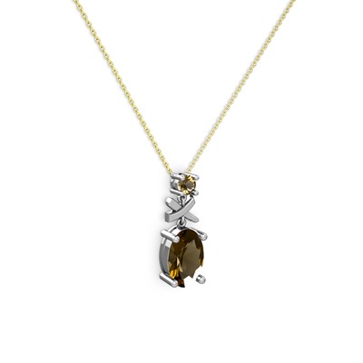 Dumanlı kuvars 8 ayar beyaz altın kolye (40 cm altın rolo zincir)