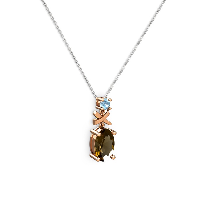 Dumanlı kuvars ve akuamarin 925 ayar rose altın kaplama gümüş kolye (40 cm beyaz altın rolo zincir)
