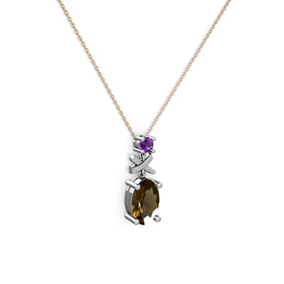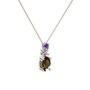 Dumanlı kuvars ve ametist 14 ayar beyaz altın kolye (40 cm rose altın rolo zincir)
