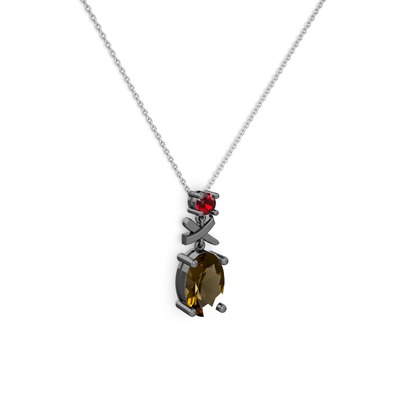 Dumanlı kuvars ve garnet 925 ayar siyah rodyum kaplama gümüş kolye (40 cm beyaz altın rolo zincir)