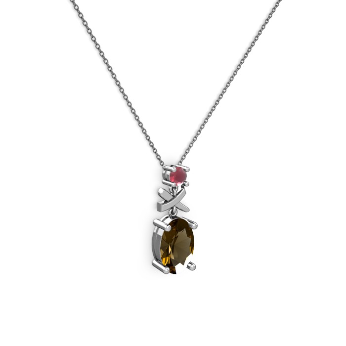 Dumanlı kuvars ve kök yakut 14 ayar beyaz altın kolye (40 cm gümüş rolo zincir)