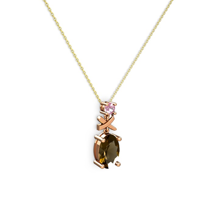Dumanlı kuvars ve pembe kuvars 925 ayar rose altın kaplama gümüş kolye (40 cm altın rolo zincir)