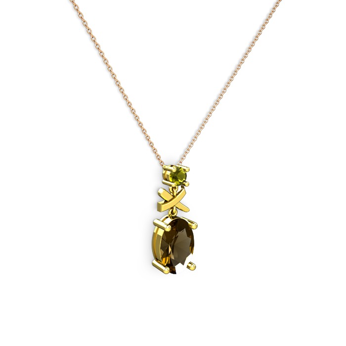 Dumanlı kuvars ve peridot 14 ayar altın kolye (40 cm rose altın rolo zincir)