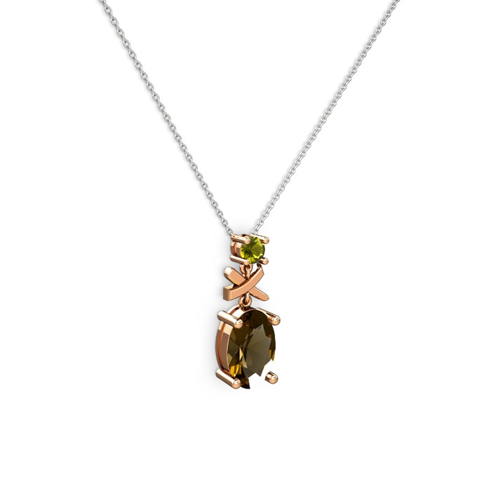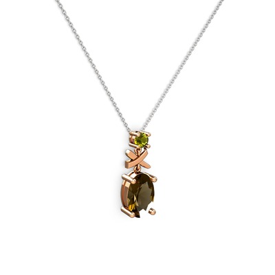 Dumanlı kuvars ve peridot 14 ayar rose altın kolye (40 cm beyaz altın rolo zincir)