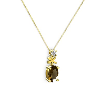 Dumanlı kuvars ve pırlanta 14 ayar altın kolye (0.24 karat, 40 cm altın rolo zincir)