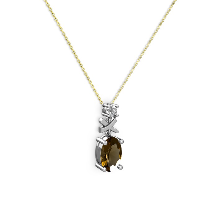 Dumanlı kuvars ve pırlanta 18 ayar beyaz altın kolye (0.24 karat, 40 cm altın rolo zincir)