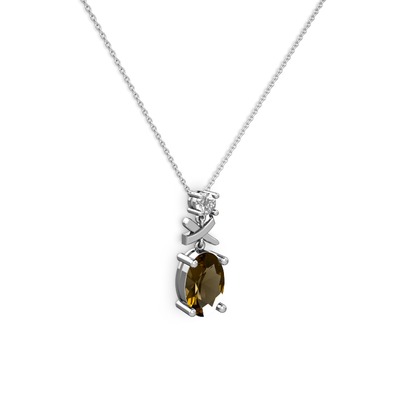 Dumanlı kuvars ve pırlanta 925 ayar gümüş kolye (0.24 karat, 40 cm beyaz altın rolo zincir)