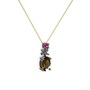 Dumanlı kuvars ve rodolit garnet 925 ayar siyah rodyum kaplama gümüş kolye (40 cm gümüş rolo zincir)