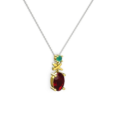 Garnet ve kök zümrüt 14 ayar altın kolye (40 cm beyaz altın rolo zincir)