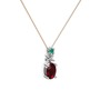 Garnet ve kök zümrüt 18 ayar beyaz altın kolye (40 cm rose altın rolo zincir)