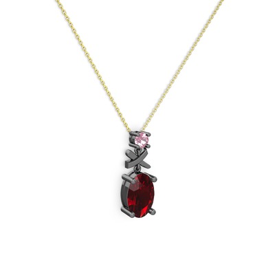 Garnet ve pembe kuvars 925 ayar siyah rodyum kaplama gümüş kolye (40 cm altın rolo zincir)