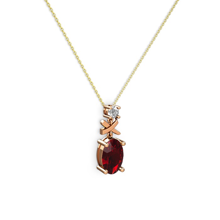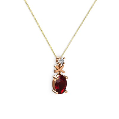 Garnet ve pırlanta 8 ayar rose altın kolye (0.24 karat, 40 cm altın rolo zincir)