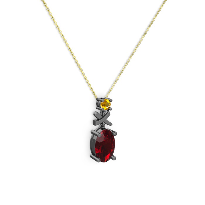 Garnet ve sitrin 925 ayar siyah rodyum kaplama gümüş kolye (40 cm altın rolo zincir)
