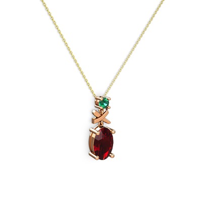Garnet ve yeşil kuvars 14 ayar rose altın kolye (40 cm gümüş rolo zincir)