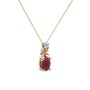 Kök yakut ve akuamarin 14 ayar rose altın kolye (40 cm gümüş rolo zincir)