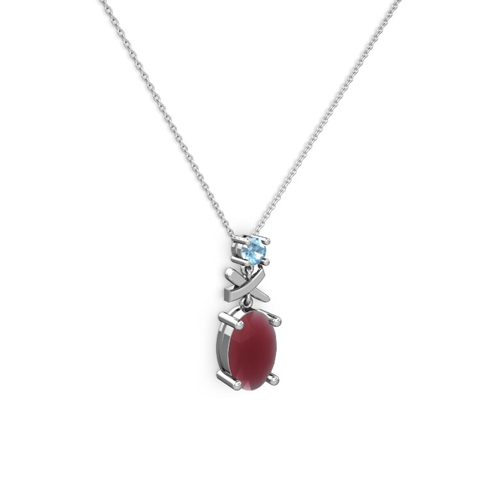 Kök yakut ve akuamarin 18 ayar beyaz altın kolye (40 cm beyaz altın rolo zincir)