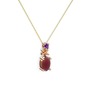 Kök yakut ve ametist 925 ayar rose altın kaplama gümüş kolye (40 cm altın rolo zincir)