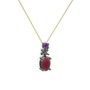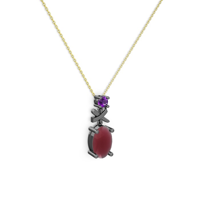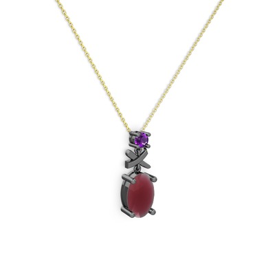 Kök yakut ve ametist 925 ayar siyah rodyum kaplama gümüş kolye (40 cm altın rolo zincir)